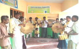 Hoths has facilitated kalayani Dappu musical team training and unit in Basanipalli village. The Dappu musical training to organized for 12 youth Dalith people, who do not have employment in Dalith community in Basanipalli village. The training has started on 7th July 2010 in basanipalli. In that day the Dappu musical training centre inaugurated.