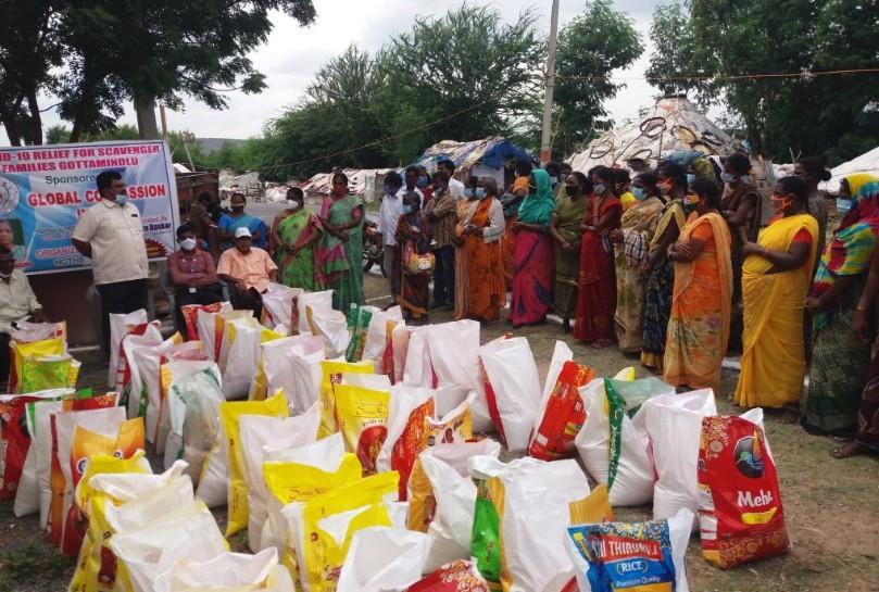 HOTHS distribution of COVID Relief Materials to 95 disadvantaged Scavenger families of scheduled castes and tribal Communities at Gottamindlu on 18th August, 12.00 am to 2.00 pm 2021 in Bestavarapet Mandal Prakasam district.