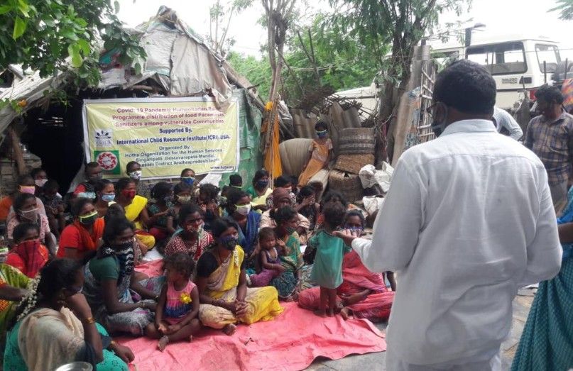 Hoths creative the awareness on eradication of covid .19 pandemic deceases 25 villages in rural area with the participation Mrs.Mubina.MBBS Medical officer, Mr.Nageswararao, HEO Asha volunteers ANMS along with her staff members Primary health center Galizerugulla were participated the distribution of the Facemasks ,Soaps Hand hygiene Sanitizers, Utilization of the vaccination centers .Hoths conducting the village level health and Hygiene, awareness programmes and also distributed food pockets for hunger Scavenger family children and pregnant ill health woman’s with the support of International Child Resource Institute (ICRI) USA.
